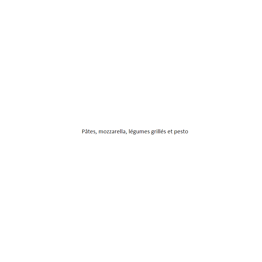 Pâtes, mozzarella, légumes grillés et pesto